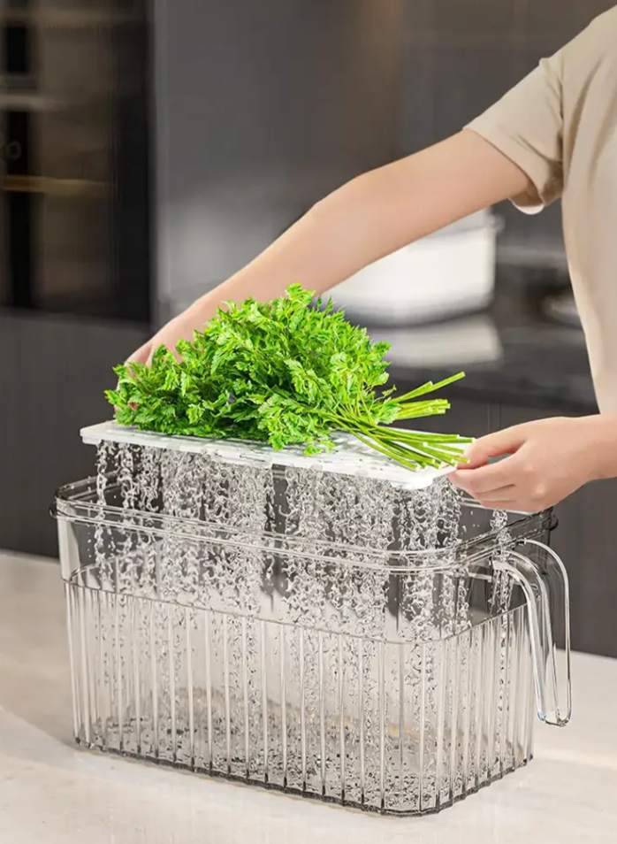 Com capacidade de 5 litros e disponível nas cores transparente e verde, este organizador de geladeira é perfeito para armazenar e separar alimentos de maneira funcional. Sua cesta drenável permite armazenar frutas e legumes sem que fiquem em contato com o líquido, prolongando sua vida útil e mantendo-os sempre frescos. Além disso, seu design ergonômico facilita o manuseio e a visualização dos itens armazenados. Nunca foi tão fácil manter tudo no seu devido lugar! 🍇🥦
